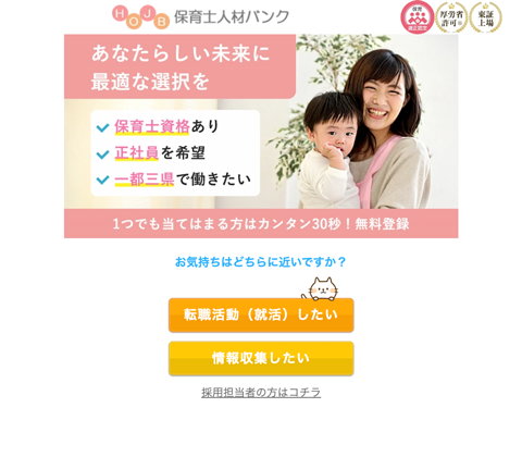 人手不足で悩む園も多く、好条件の非公開求人情報を持っているエージェントも。